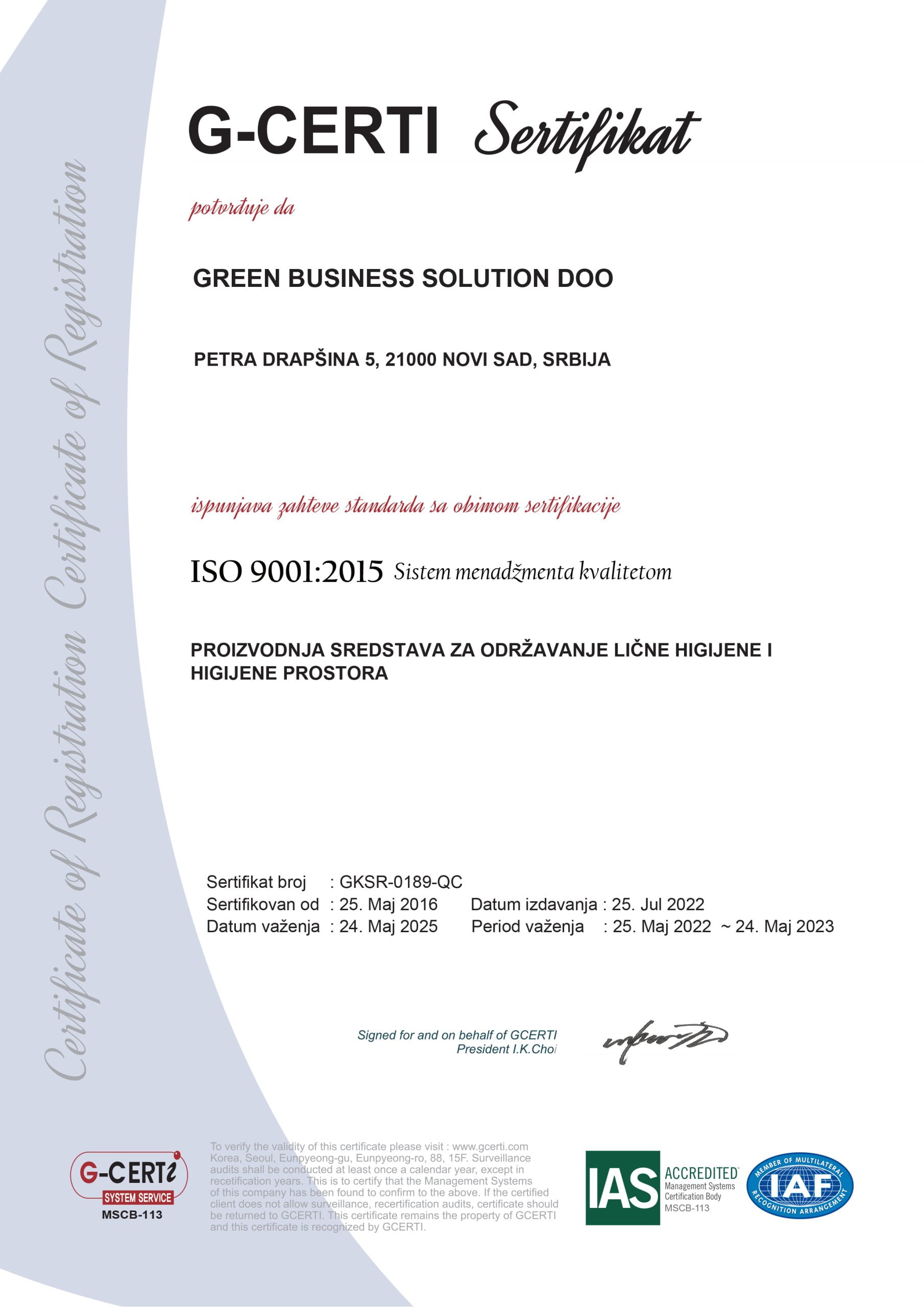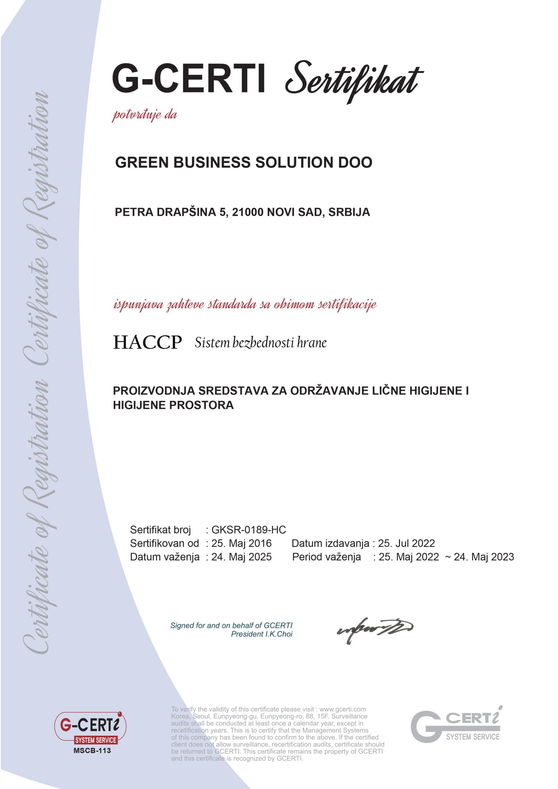 u nameri da Vam na ukazano poverenje odgovorimo na najbolji mogući način, u proizvodnju Greena uveli smo standarde proizvodnje ISO 9001ISO 14001ISO 45001 kao i HACCP sistem, kako bismo ostali dosledni vrhunskom kvalitetu i konstantno ga unapređivali.